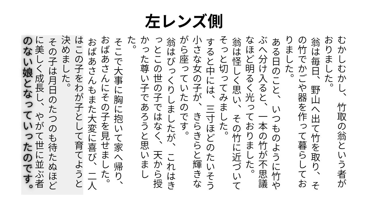 中央はかなり見やすくなった一方で、端の文字は視線移動時に少しストレスが残りました。